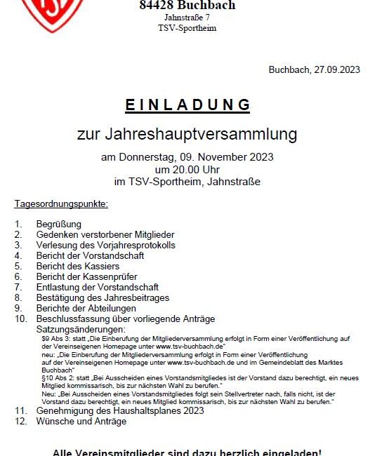 Jahreshauptversammlung 2023 am 09.11.2023 im neuen Vereinsheim