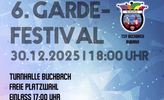 Zum Ticketkauf: https://tinyurl.com/GardefestivalBuchbach Auch dieses Jahr laden wir euch am 30.12.2025 wieder zu uns nach Buchbach ein, um verschiedenste Garden aus unserer Umgebung zu bestaunen . Facts: Dienstag 30.12.2025 Einlass 17:00 Uhr, Beginn 18:00 Uhr Freie Platzwahl VVK 13 €, AK 18 € Afterparty mit Barbetrieb
