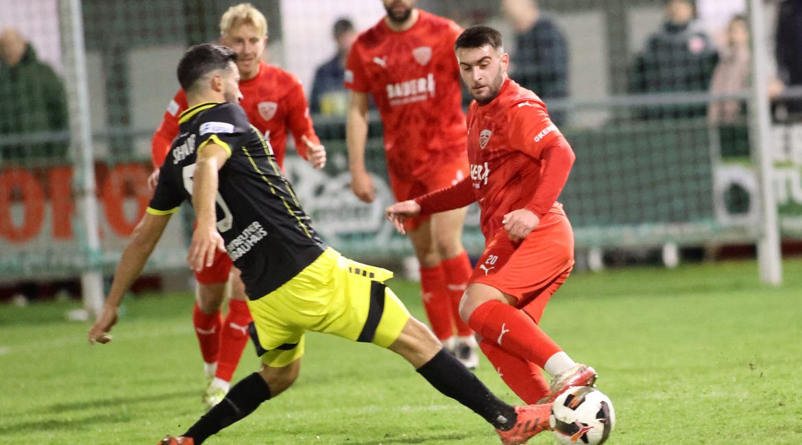 Die Partie am Freitag war gerade mal fünf Minuten alt, als Schiedsrichter Elias Wörz (TSV Friesenried) die erste gravierende Entscheidung treffen musste und nach einem Foul von Alexander Seidel an Tobias Stoßberger einen Strafstoß gegen Bayreuth verhängte: Albano Gashi, bislang bei vier Versuchen vom Punkt viermal erfolgreich, trat an, donnerte die Kugel aber an die Latte. Dafür durften dann aber die Gäste in der 13. Minute jubeln, als Kevin Hingerl den Ball nicht unter Kontrolle brachte, Davide Sekulovic mutterseelenallein vor Ludwig Zech auftauchte und dem Buchbacher Schlussmann das Nachsehen gab – ein geschenkter Treffer! Unterberger: „So etwas passiert einfach mal im Fußball.“